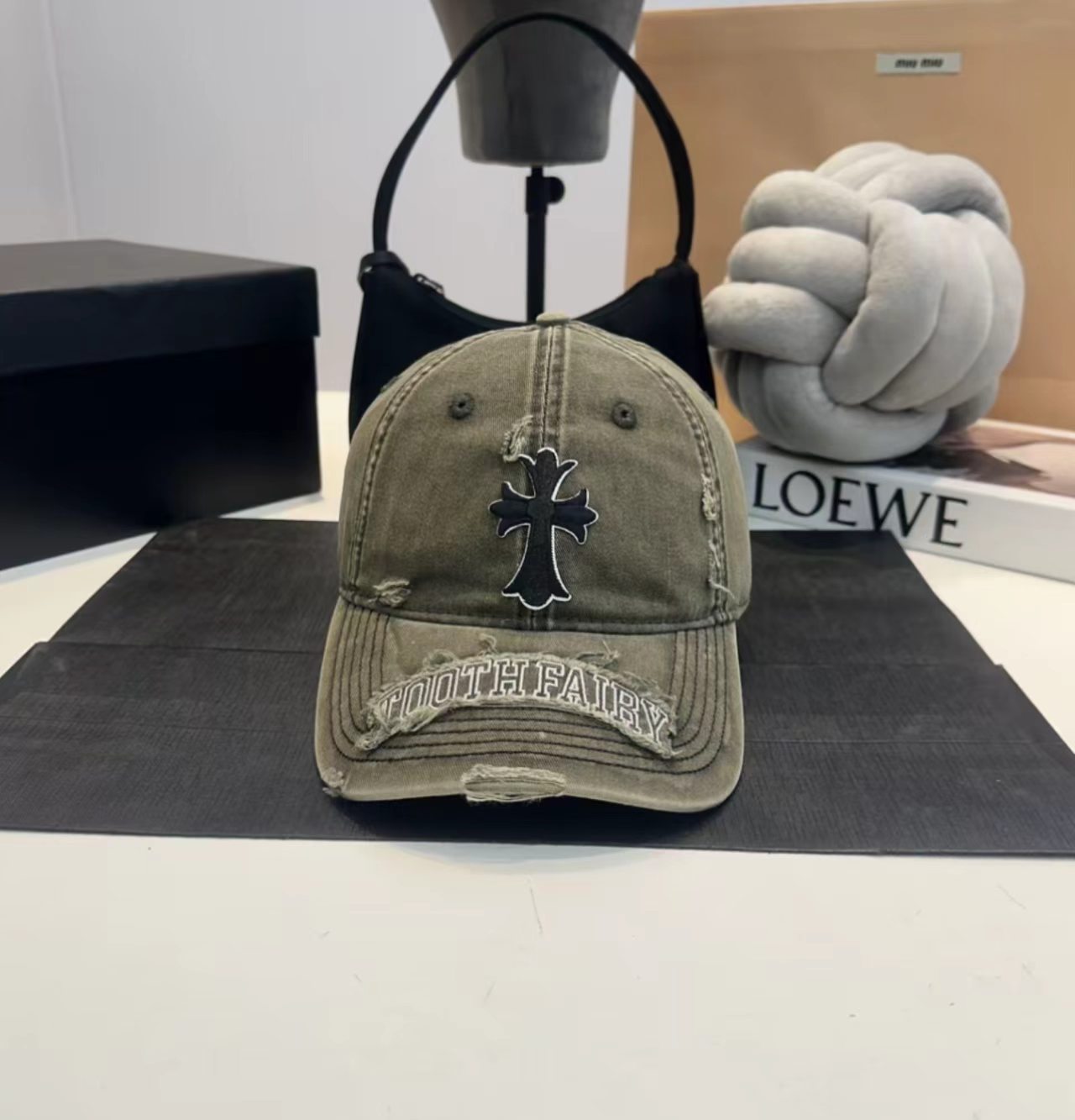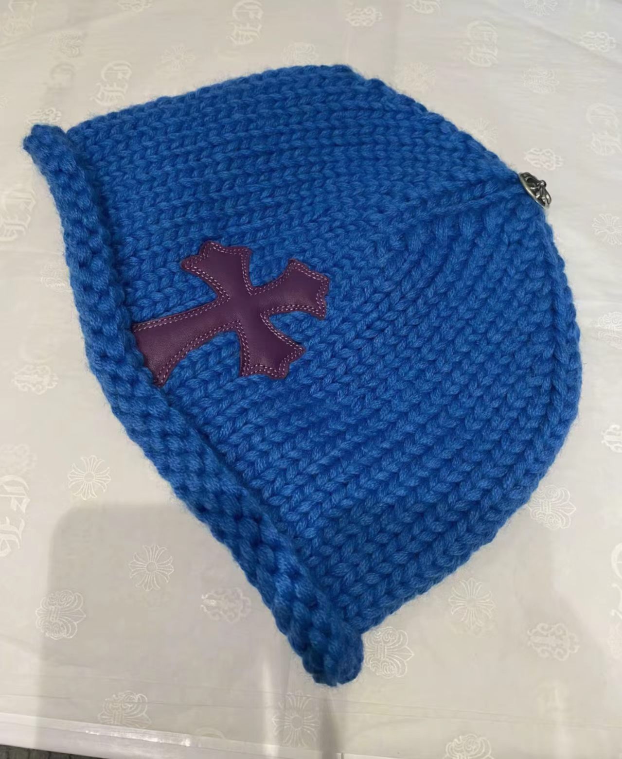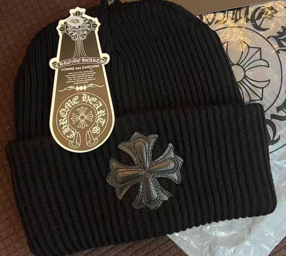 Chrome Hearts x COMME des GARÇONS Style Ribbed Knit Beanie with Cross Leather Patch